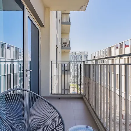 Stylish Dubai Hills Retreat 1Br-Park Heights 2 T2 Appartement biedt uitzicht op de stad en heeft een patio, een balkon en een zitruimte uitgerust met airconditioning. Daarnaast vindt u er een apart toilet en een douche.